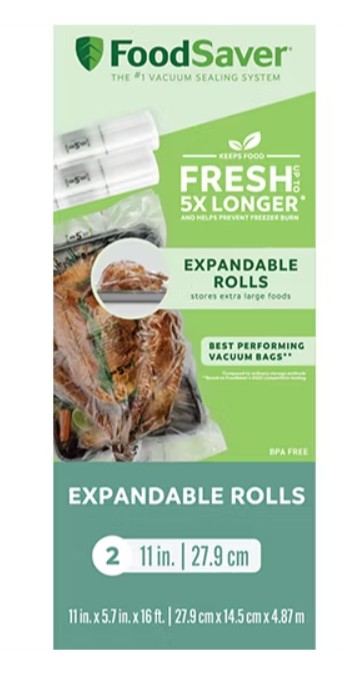 FoodSaver Expandable Vacuum Sealer Rolls – BPA-Free Airtight Food Storage Bags (2 Pack, 11” x 16’)